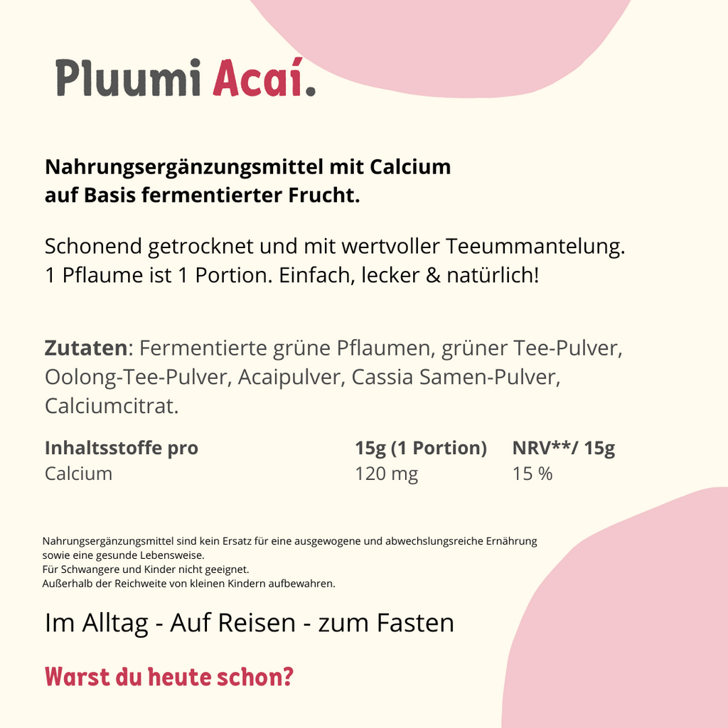 *Das in Pluumi enthaltene Calcium trägt zur normalen Funktion von Verdauungsenzymen bei.